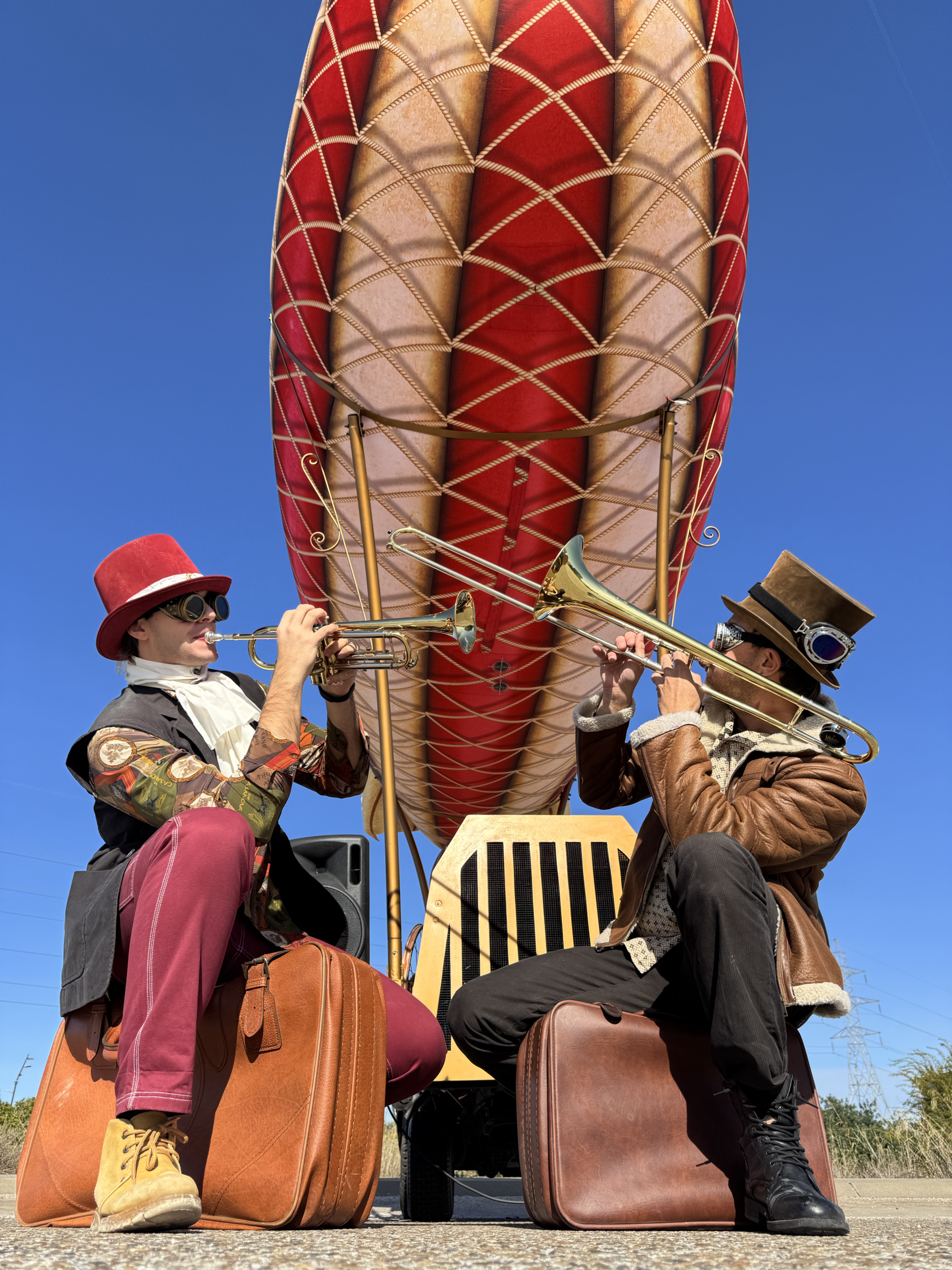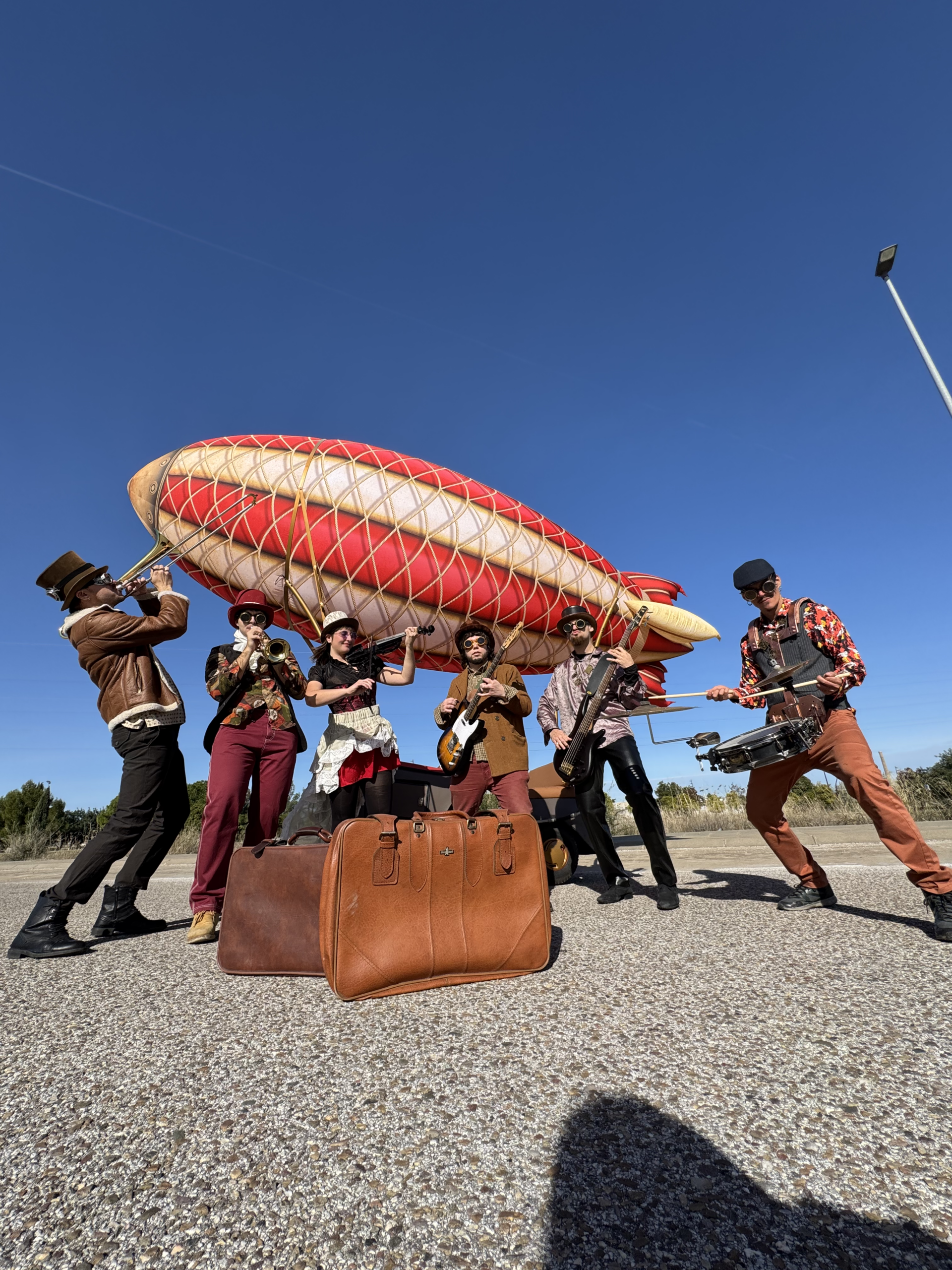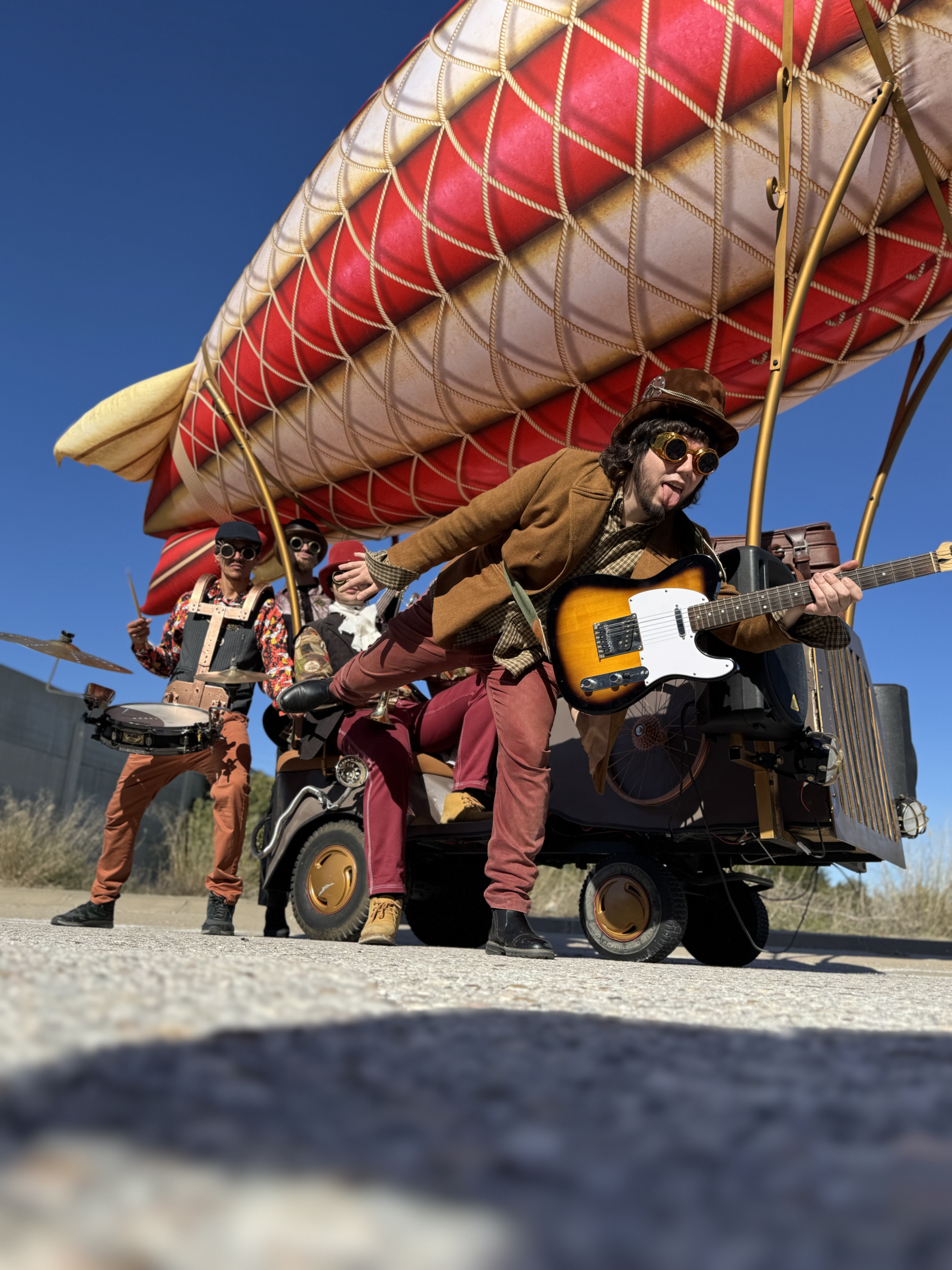 Vehículo temático motorizado que porta un zepelín de 4,5 metros de altura y 6 metros de largo.